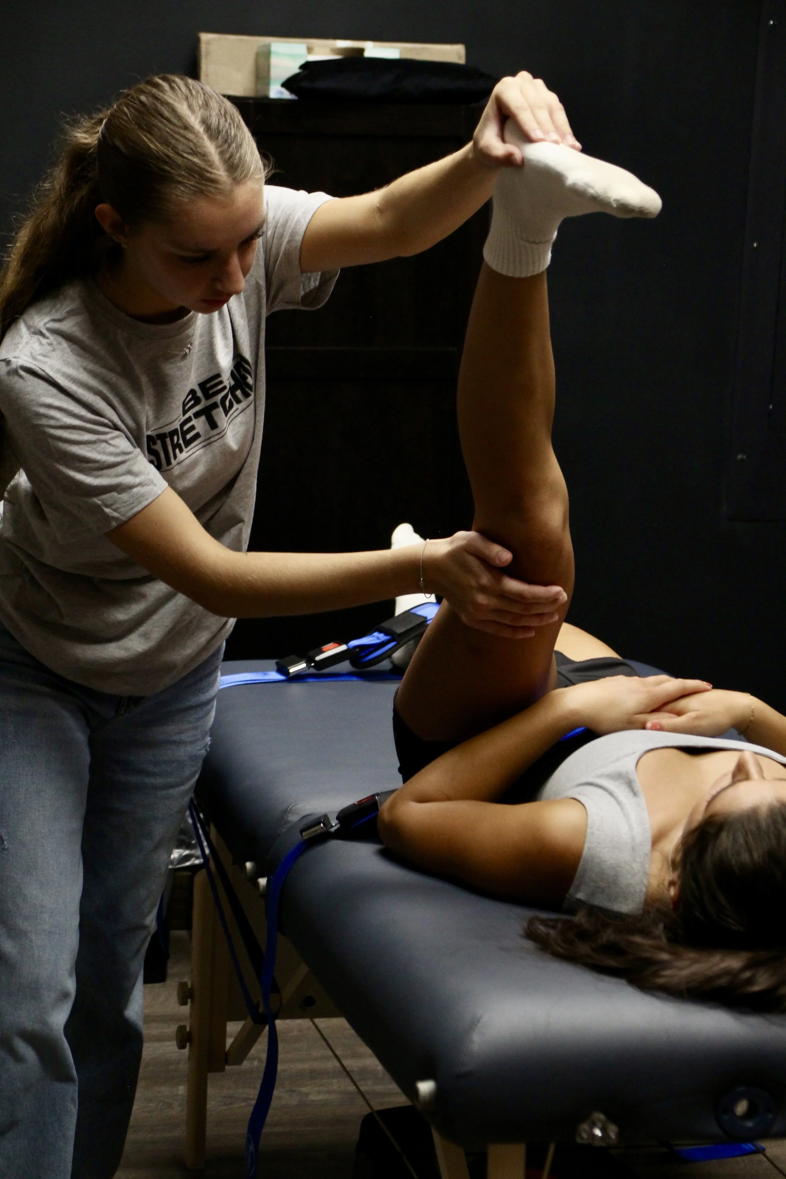 Assisted Stretching: You relax while we do the work for you, allowing deeper, more effective stretches.